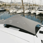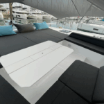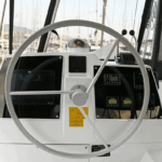 Boat equipment features a classic mainsail, electric winches, a generator, a salon GPS plotter, a bimini and an outside GPS plotter. It also boasts heating, air conditioning, an audio system, outside speakers and a flybridge. The fully-equipped galley includes an ice maker, a coffee machine, a fridge, an oven and a cooker.
