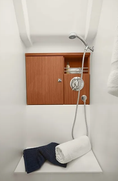 Sailing yacht MG-CR51-18-PSW offers 3 toilets with a shower.