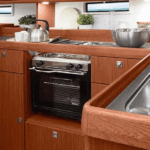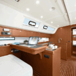 Boat equipment features a rolling mainsail, solar panels, a bimini and a bow thruster. It also boasts an audio system, outside speakers and inside speakers. The fully-equipped galley includes a fridge, an oven, a cooker, a sink and kitchen utensils.