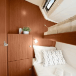 MG-CR51-18-PSW can accommodate up to 10 people in 4 double cabins and 1 double cabin with a bunk bed. Pillows and blankets are included in the price.