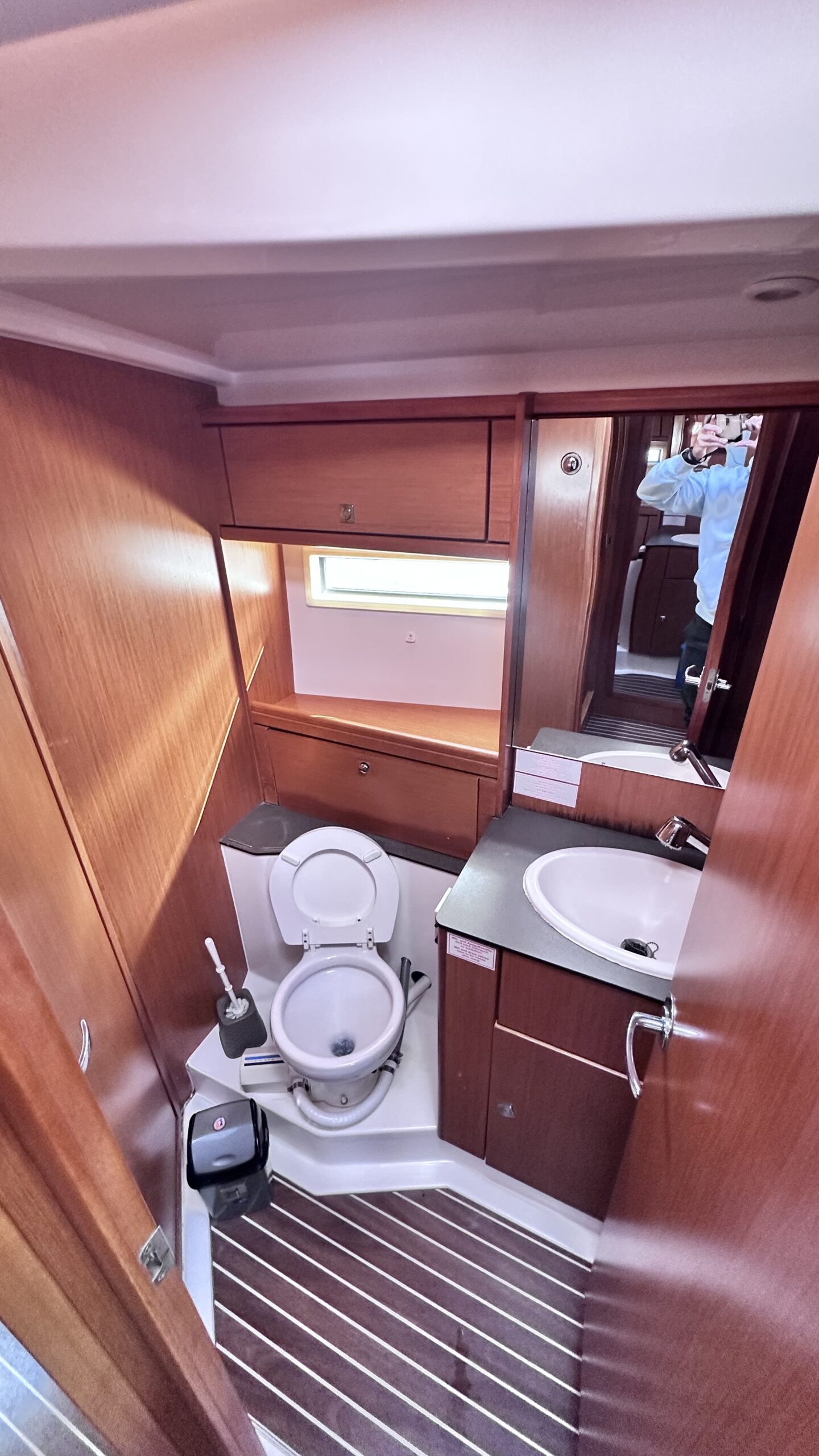 Sailing yacht MG-CR56-14-GS offers 4 toilets with a shower.