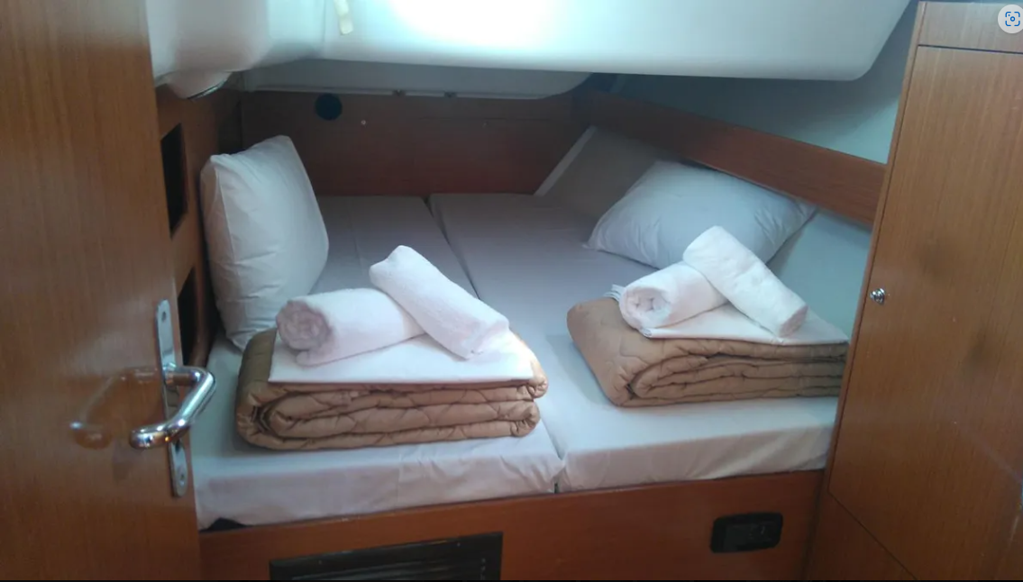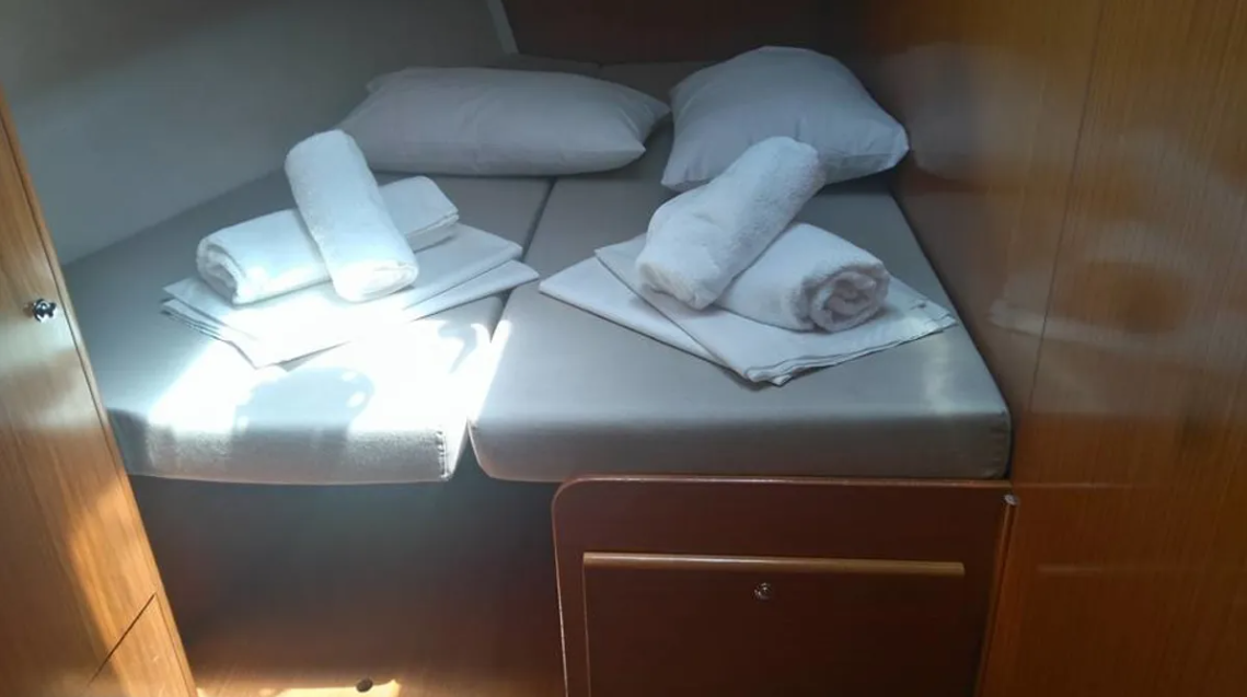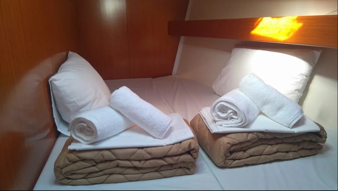 MG-CYCL50.4-06-AM can accommodate up to 9 people in 1 single cabin and 4 double cabins. Pillows and blankets are included in the price.