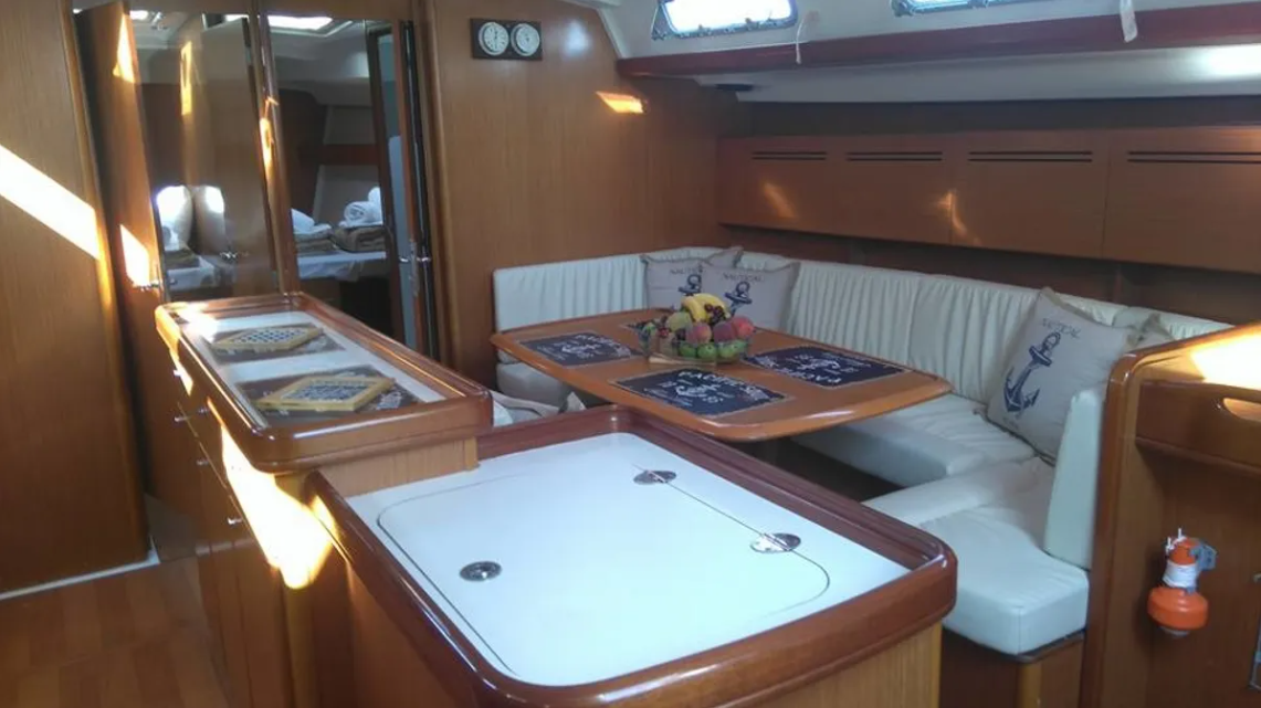5-cabin sailing yacht Beneteau Cyclades 50 – MG-CYCL50.4-06-AM was built in 2006 (renewed 2023), and it is docked in Marina Alimos, Greece.