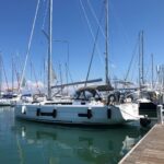 5-cabin sailing yacht Dufour 470 – MG-DUF470-22-ME was built in 2022 and it is docked in Lefkas Marina, Greece.