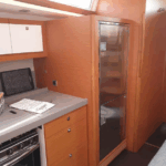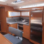 Boat equipment features a rolling mainsail, solar panels, a BBQ, a bimini and a bow thruster. It also boasts a flat screen TV, an audio system, outside speakers and inside speakers. The fully-equipped galley includes an ice maker, a fridge, an oven, a cooker and a sink.