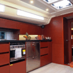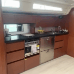 Galley: Gas stove & oven, Electric fridge, Cuttlery – Kitchen equipment, Mugs, plates, glasses, spoons, knifes, etc.