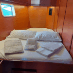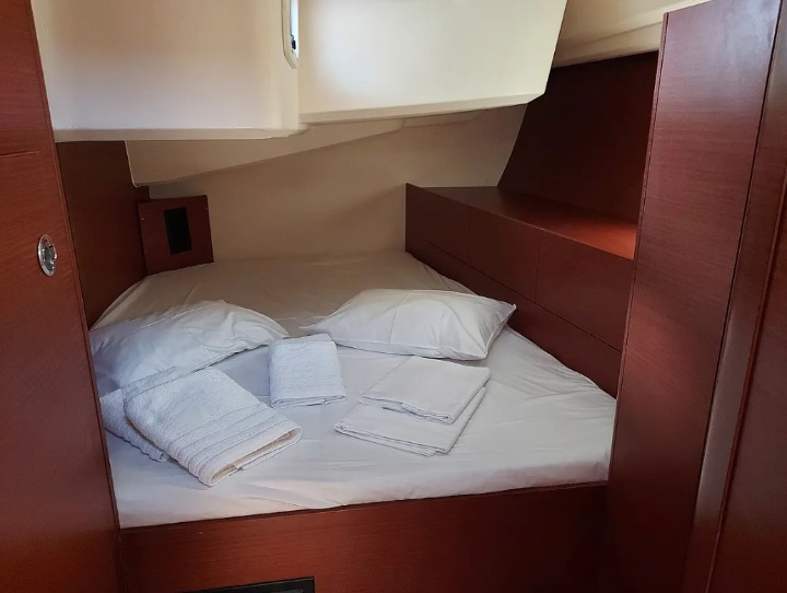MG-H508-19-VA can accommodate up to 12 people in 1 single cabin, 4 double cabins, 1 double cabin with a bunk bed and a saloon with 1 extra bed. Pillows and blankets are included in the price.