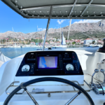 Boat equipment features a classic mainsail, solar panels, a generator, a bimini and an outside GPS plotter. It also boasts heating, air conditioning, an audio system, outside speakers and inside speakers. The fully-equipped galley includes a freezer, a coffee machine, a fridge, an oven and a cooker.