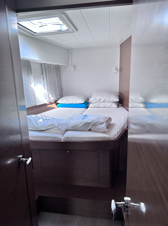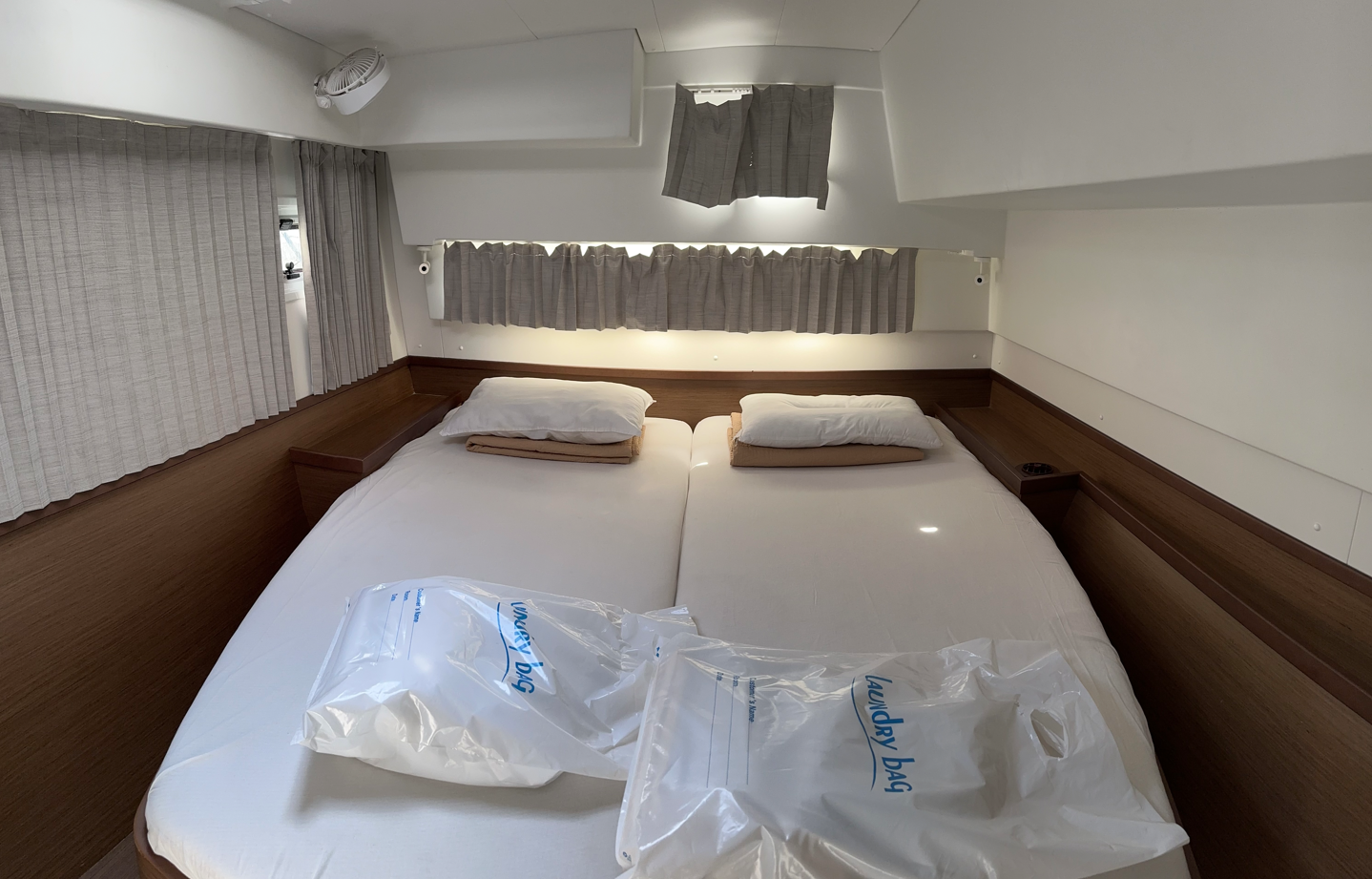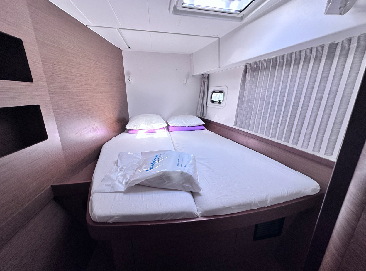MG-LAG42-20-S can accommodate up to 12 people in 2 single cabins, 4 double cabins and a saloon with 2 extra beds. Pillows and blankets are included in the price