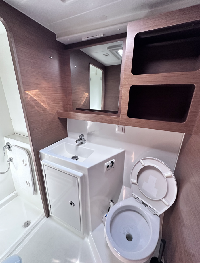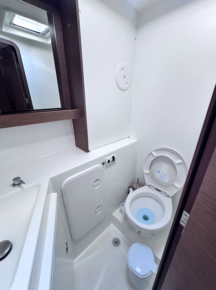 Catamaran MG-LAG42-20-S offers 4 toilets with a shower.