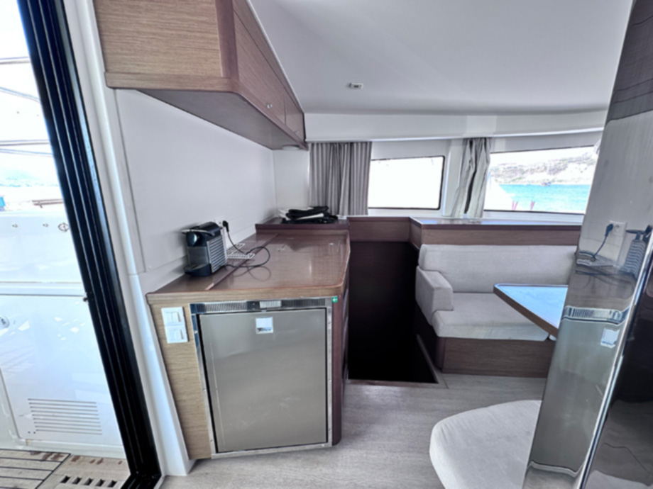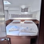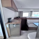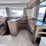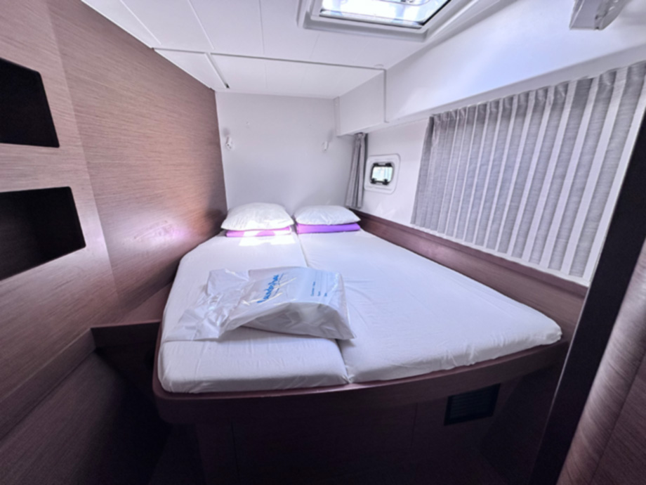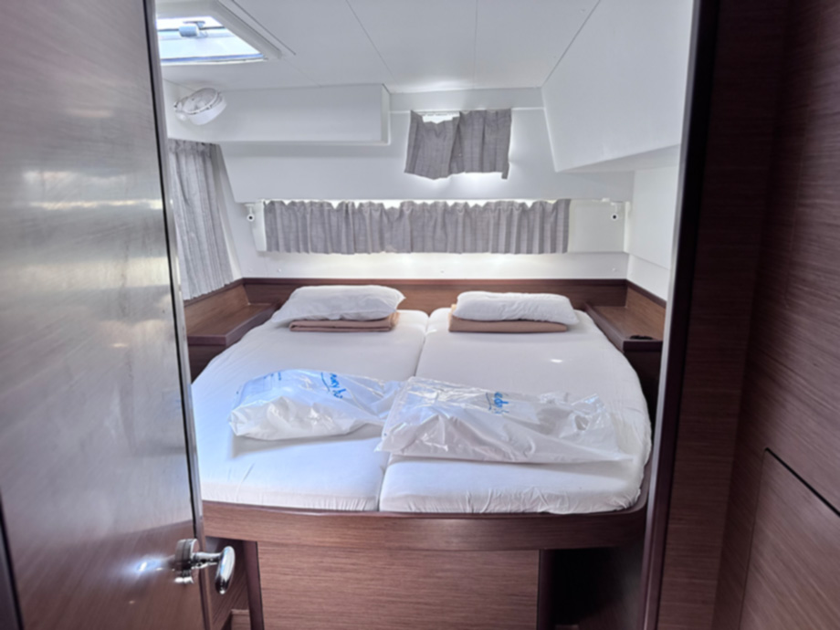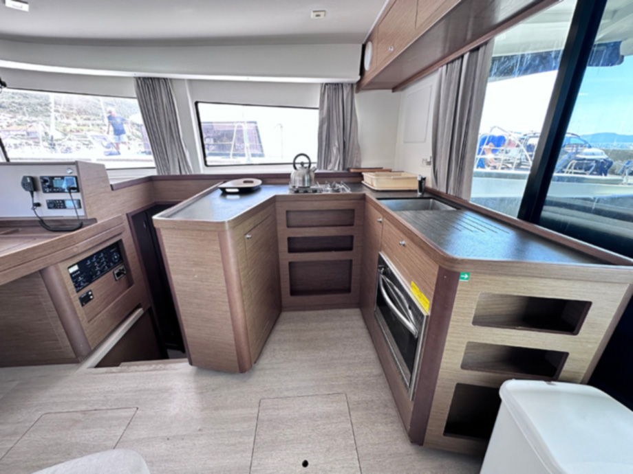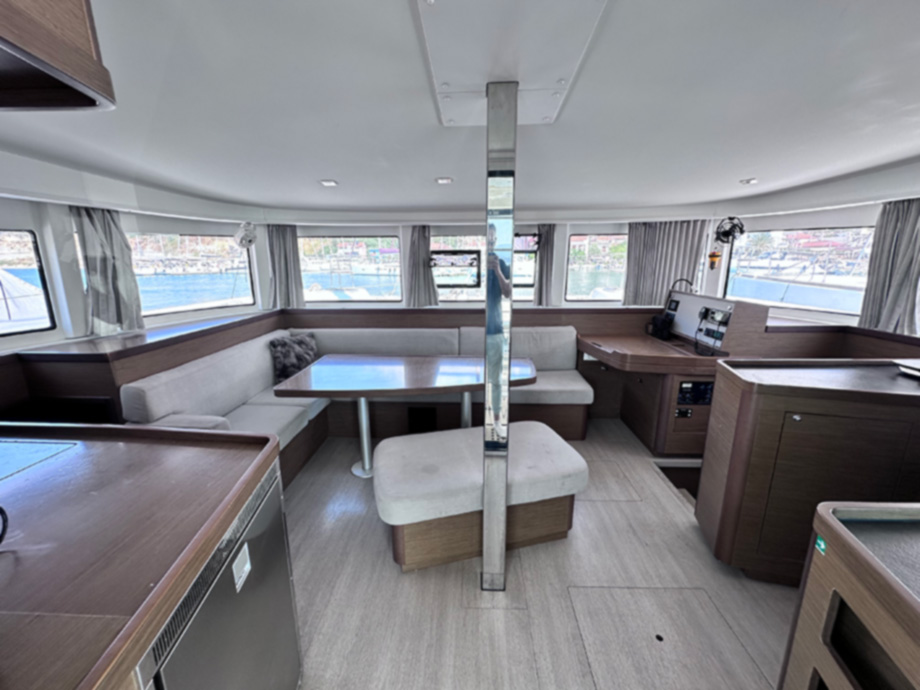 Below deck, the Lagoon 42 impresses with a bright, airy interior filled with natural light from large panoramic windows. The modern galley and comfortable dining area are designed for both practicality and style. Layouts typically include three or four cabins, each with en-suite bathrooms, offering privacy and comfort for all on board. With its blend of innovative design, reliable sailing performance, and luxurious living spaces, the Lagoon 42 sets the standard for modern cruising catamarans.