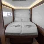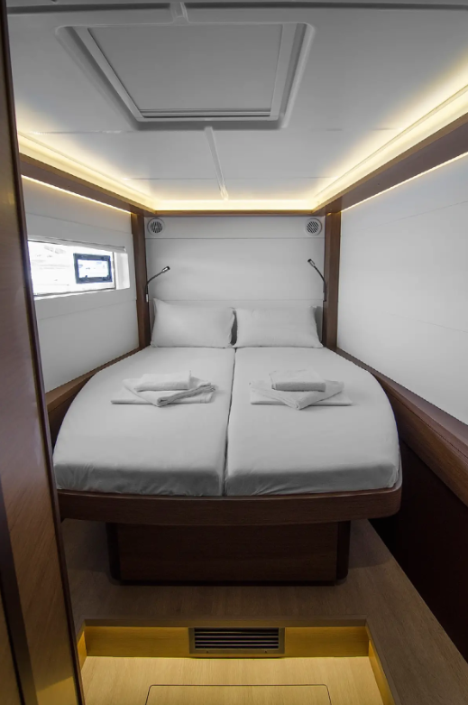MG-LAG46-20-VGP can accommodate up to 10 people in 2 single cabins and 4 double cabins. Pillows and blankets are included in the price.
