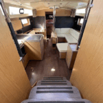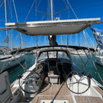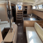 Boat equipment features a full batten mainsail, solar panels, a bimini and a bow thruster. It also boasts an audio system and outside speakers. The fully-equipped galley includes a refrigerator, an oven, a gas cooker and 2 x sink.