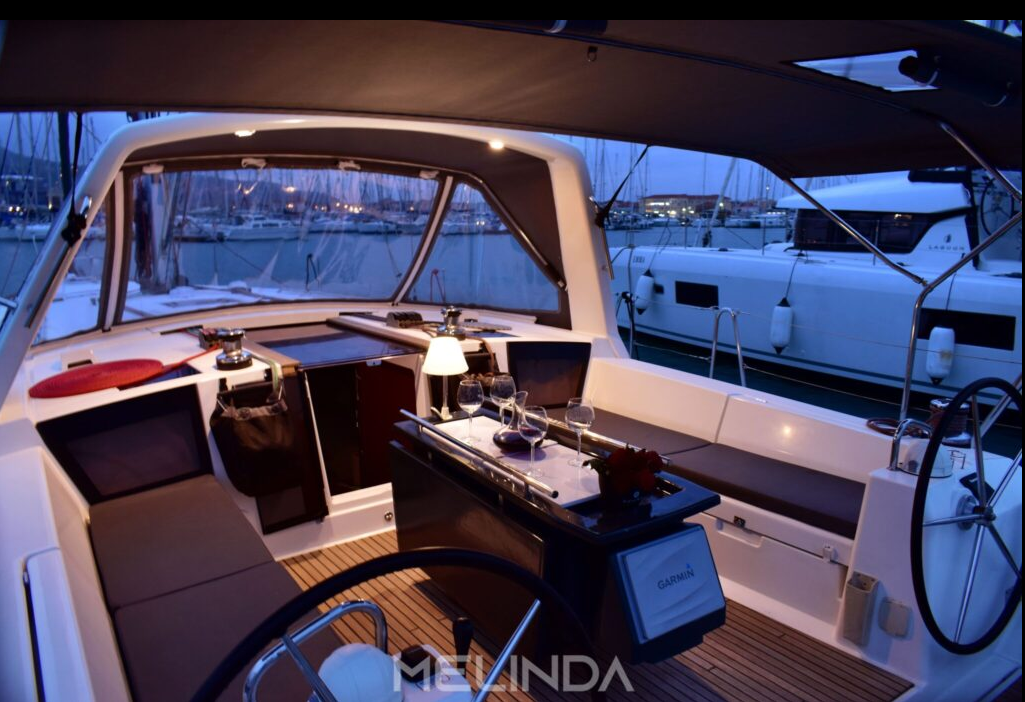 4-cabin sailing yacht Oceanis 45 – Melinda was built in 2012 and it is docked in Lefkas Main Port, Greece.