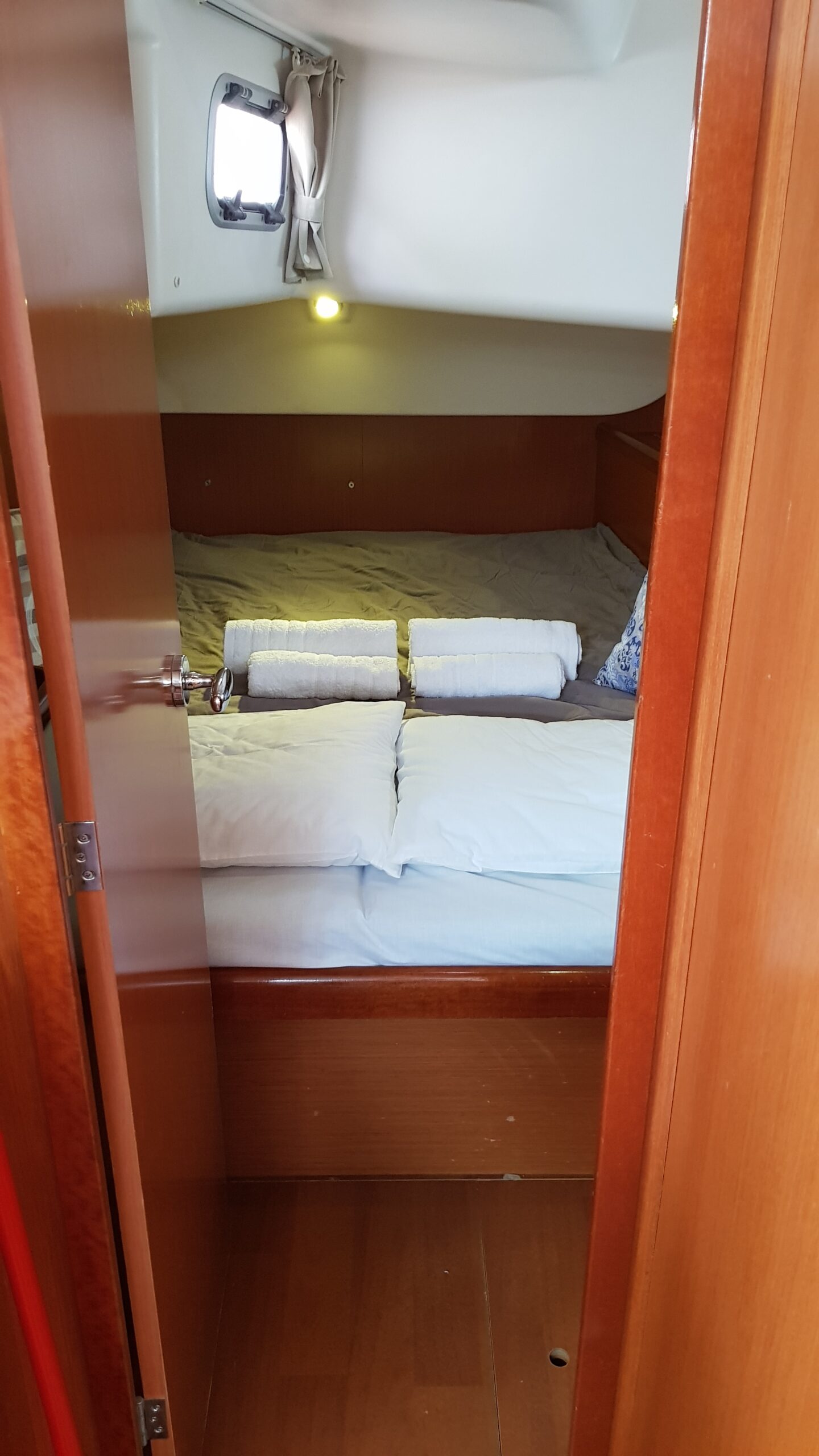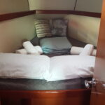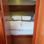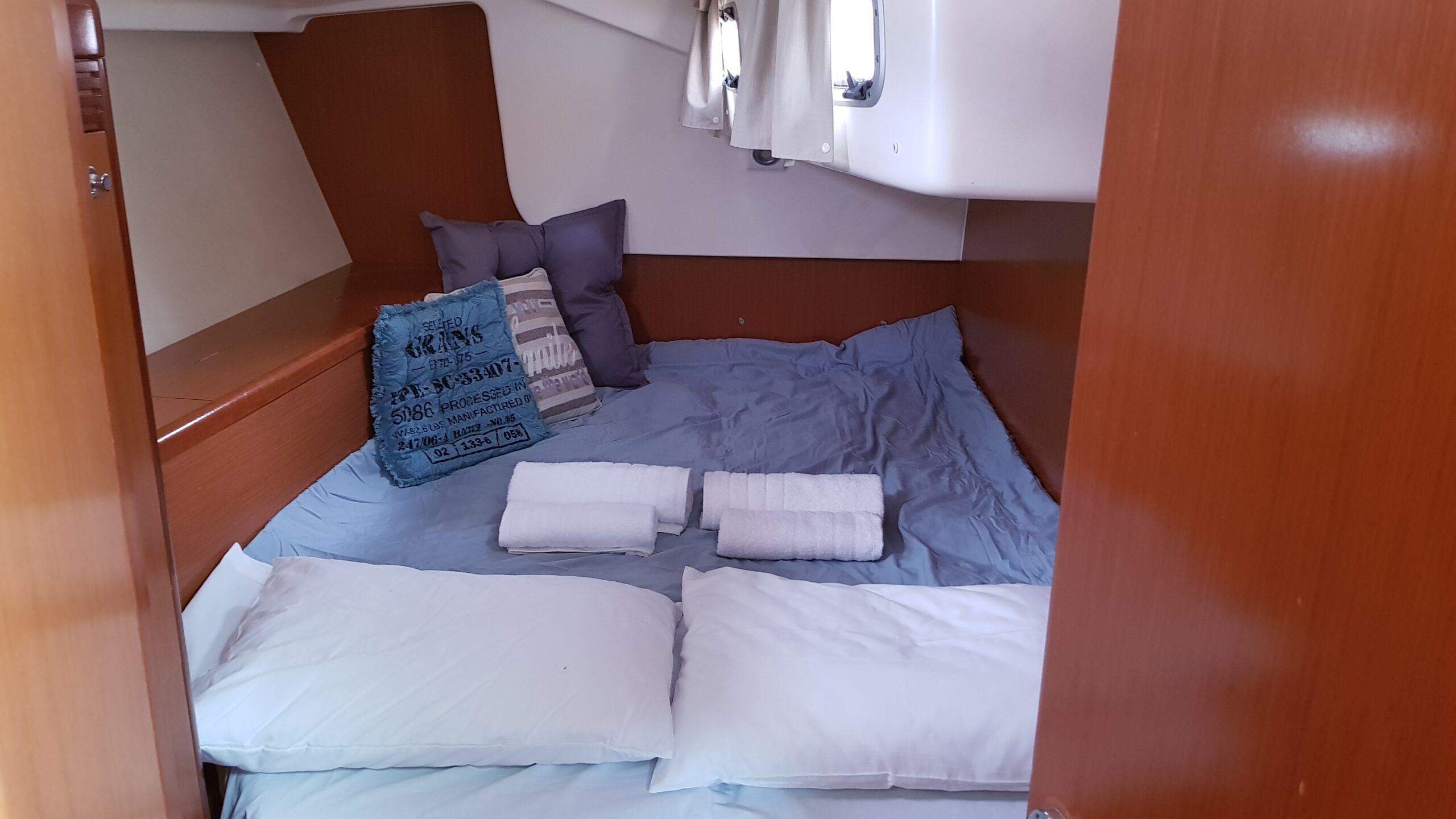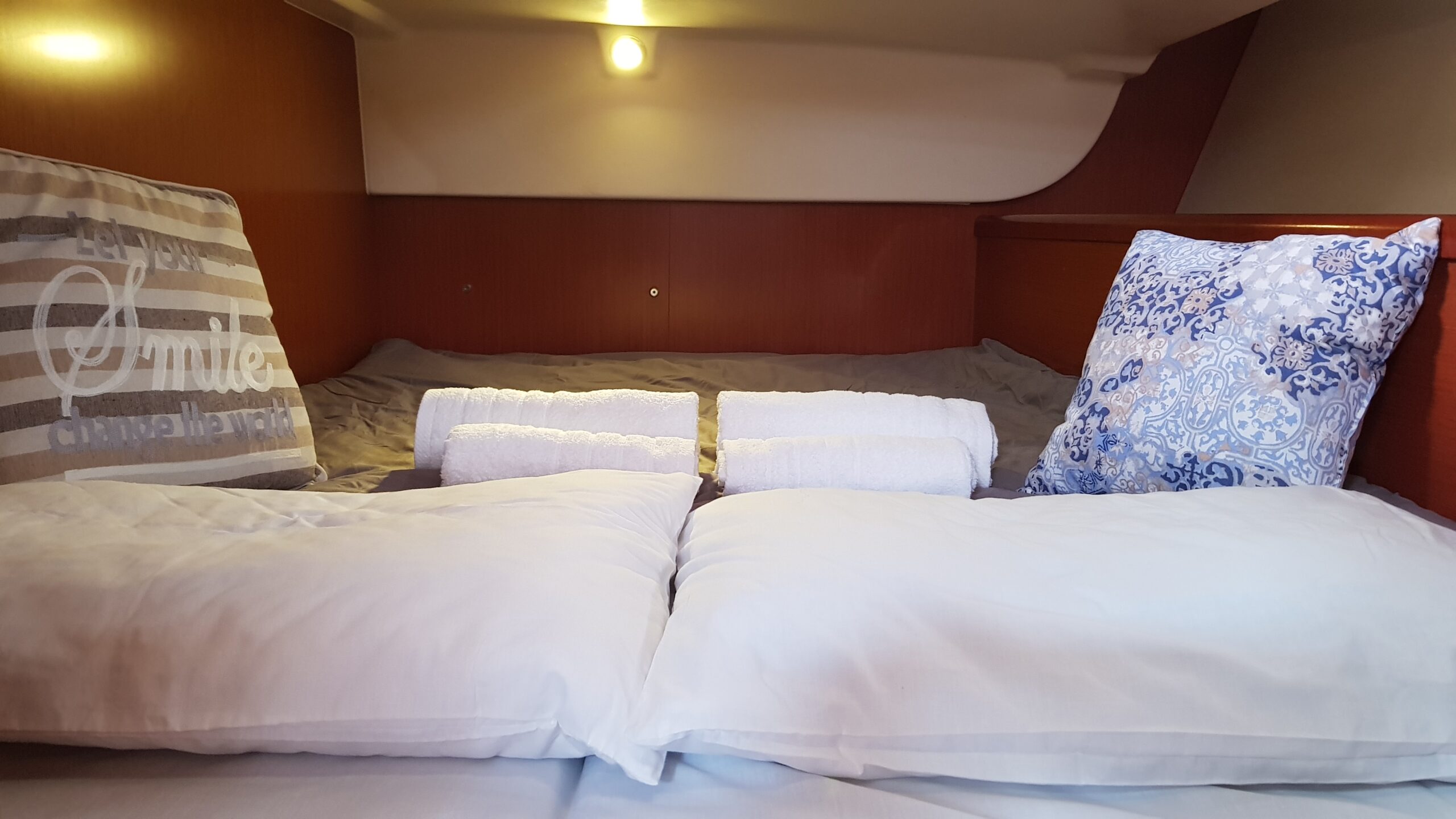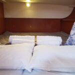 MG-OC46-09-KS can accommodate up to 10 people in 3 double cabins, 1 double cabin with a bunk bed and a saloon with 2 extra beds. Pillows and blankets are included in the price.