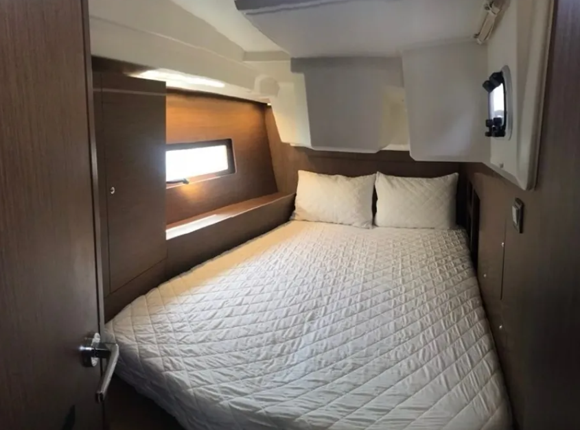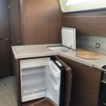 Boat equipment features a rolling mainsail, solar panels, a bimini and a bow thruster. It also boasts an audio system, outside speakers and inside speakers. The fully-equipped galley includes a fridge, an oven, a cooker, a sink and kitchen utensils.