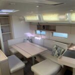 Boat equipment features a rolling mainsail, solar panels, a generator, a bimini and a bow thruster ,Hydraulic gangway, Hydraulic lifting swimming platform, teak deck , Eletric toilets  . It also boasts heating, air conditioning, an audio system, outside speakers and inside speakers. The fully-equipped galley includes a fridge, an oven, a cooker, a sink and kitchen utensils.