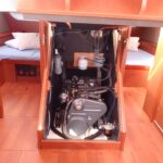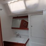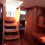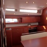 Boat equipment features a rolling mainsail, solar panels, a bimini and a bow thruster. It also boasts a flat screen TV, an audio system and outside speakers. The fully-equipped galley includes a fridge, an oven, a cooker, a sink and kitchen utensils.