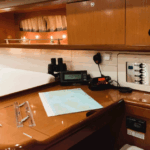 Boat equipment features a rolling mainsail, electric winches, solar panels, a generator, a bimini and a bow thruster. It also boasts a flat screen TV, heating, air conditioning, an audio system and a DVD Player. The fully-equipped galley includes a freezer, a fridge, an oven, a cooker and a sink.