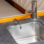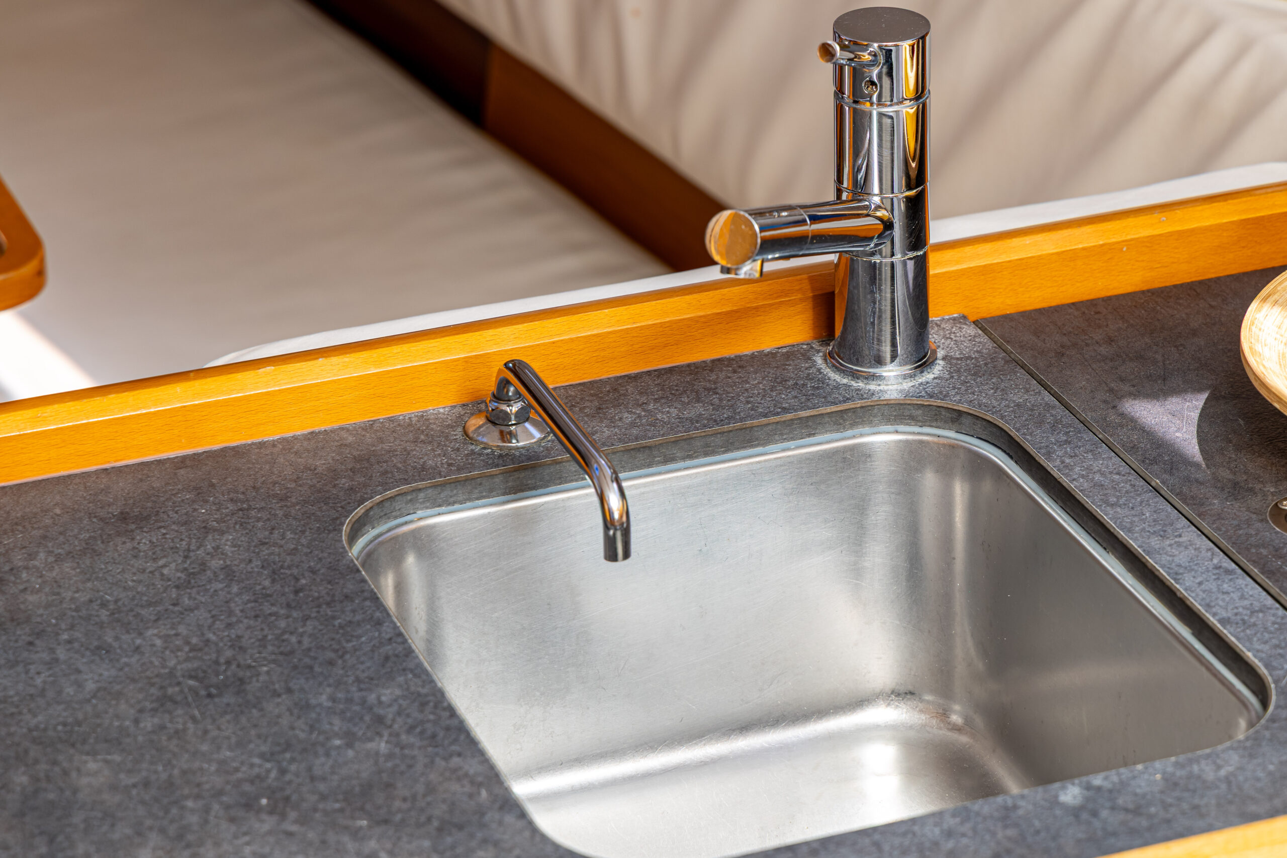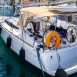 Boat equipment features a rolling mainsail, solar panels, a bimini and an outside GPS plotter. It also boasts an audio system, outside speakers and inside speakers. The fully-equipped galley includes a fridge, an oven, a cooker, a sink and kitchen utensils.