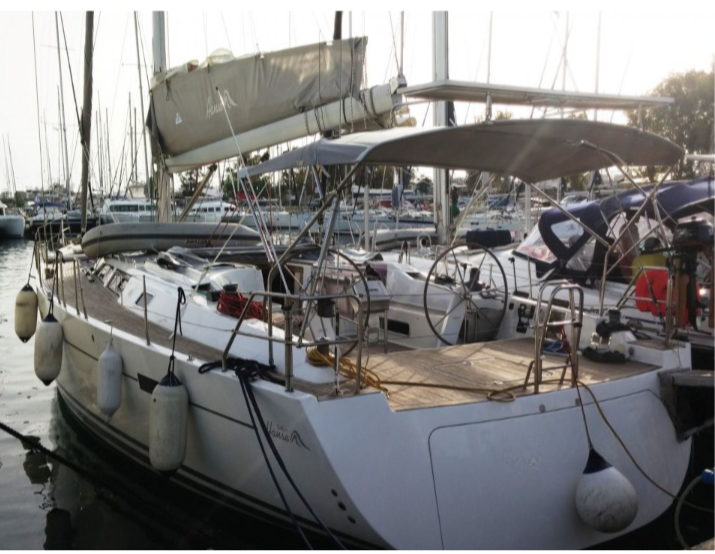 5-cabin sailing yacht Hanse 540 – MG-H540-08-MA was built in 2008 (renovated in 2024) and it is docked in Finikas marina, Greece. MG-H540-08-MA can accommodate up to 10 people in 1 single cabin, 4 double cabins and a saloon with 1 extra bed. Sailing yacht MG-H540-08-MA offers 5 toilets with a shower. Boat equipment features a classic mainsail, electric winches, solar panels, a generator, a salon GPS plotter and a bimini. It also boasts a flat screen TV, heating, air conditioning, an audio system and a DVD Player. The fully-equipped galley includes a freezer, a fridge, an oven, a cooker and a sink. A PERIOD: 25/07 – 15/08/2026 B PERIOD: 13/06 – 25/07/26 & 15/08 – 12/09/26 C PERIOD: 17/05 – 12/06/26 & 12/09 – 26/09/26 D PERIOD: 18/04 – 16/05/26 & 26/09 – 03/10/26 E PERIOD: before 18/04/26 & after 04/10/26